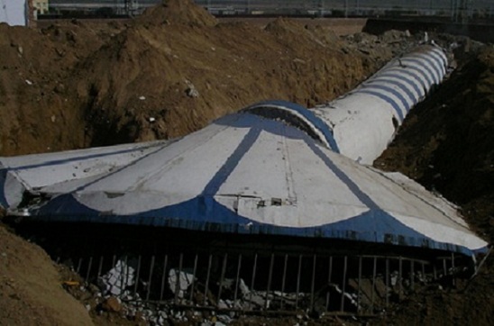 1、拆除水塔底部的清灰口,清理干凈水塔底部的積灰及垃圾,并在水塔底部用鋼管、鋼板搭設鋼板斜面,以利于拆除水塔的廢渣自動排出水塔外,避免煙道堵塞和便于清理,白天拆除水塔,晚上清運完當天所拆下來的垃圾。
